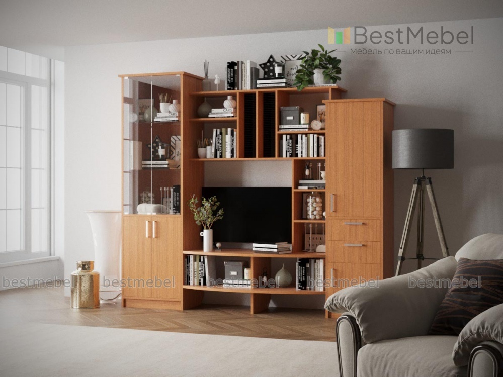 Данная модель станет отличным украшением любой гостиной. Мебельная стенка МС 11 имеет приятный дизайн. Она оснащена 2-мя шкафами с несколькими отделениями. В них можно хранить элементы гардероба, личные вещи, предметы быта, столовые сервизы. В центре присутствуют ниши под ТВ, игровую приставку и DVD-проигрыватель. Для семейных фотографий, декоративных украшений, ваз с цветами и книг предусмотрены открытые секции в верхней части товара. Заказать продукт Вы сможете в нашем интернет-магазине.