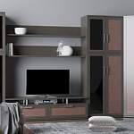 Стенка Бельканто BMS – современная модель для просторной гостиной. Благодаря угловой конструкции вы сможете выгодно использовать особенности планировки, а рамочные фасады с текстурными вставками, имитирующими натуральное дерево, создадут теплую, уютную атмосферу. Стенка включает в себя платяной шкаф, оригинальные комбинированные витрины, тумбу с подставкой для ТВ, навесные полки и торцевой стеллаж. Купить стенку Бельканто BMS по доступной цене вы всегда сможете в нашем интернет-магазине.