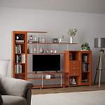В моей комнатке много мебели не влазит и габаритная мебель не подходит. Подруга посоветовала Ваш сайт и я нашла подходящую модель. Довольно необычно, стильно. Удобные витрины, ящечки для мелочей, полочка для телевизора удобная и не нужно что-либо придумывать. Цвет выбрала на свой вкус. Товаром довольна!