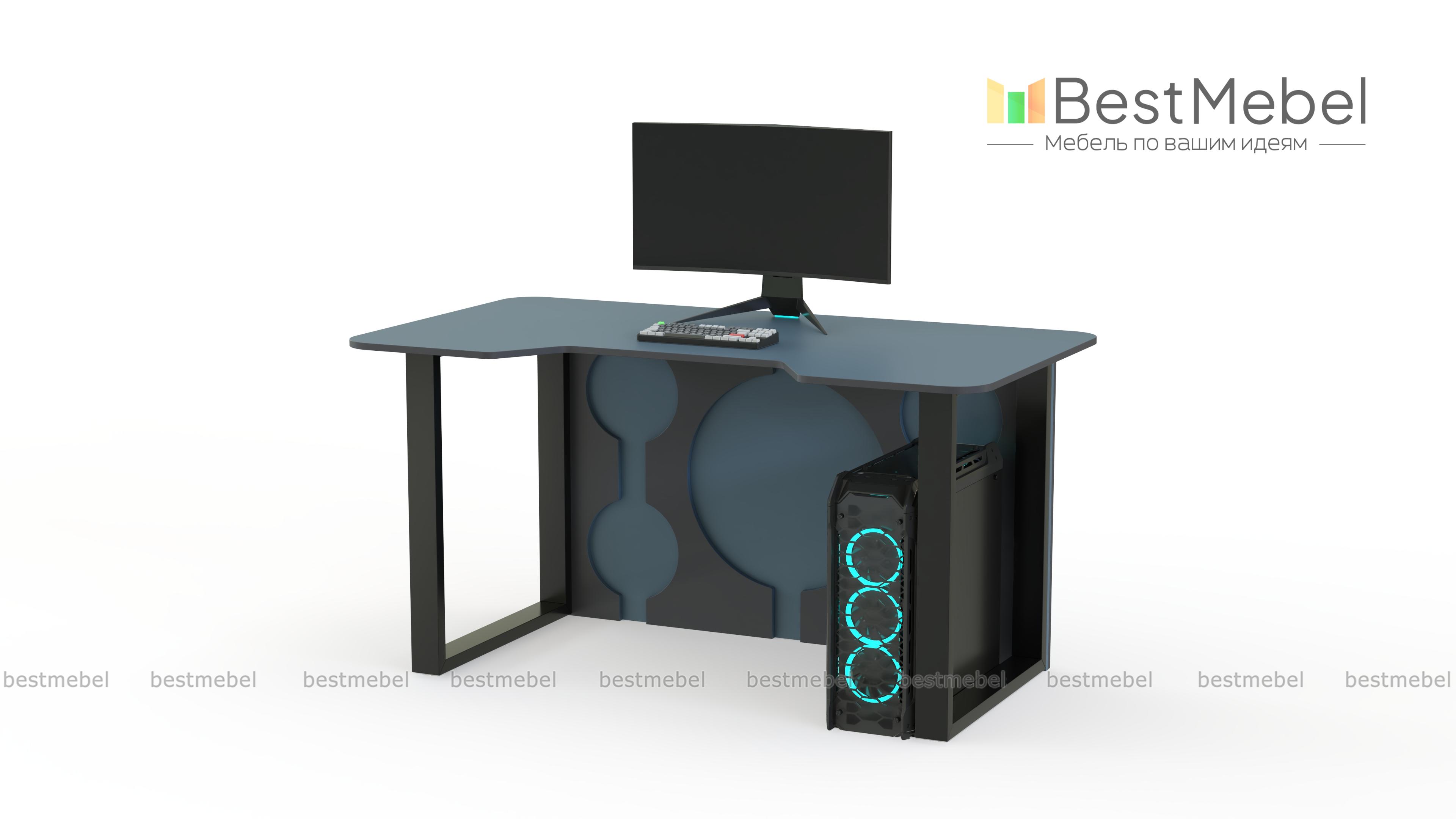 Геймерский стол Брук тип 8 BMS, выполненный в графитово-белой гамме, отличается ярким дизайном и эффектно дополнит интерьер в стиле хай-тек или индастриал. Модель располагается на устойчивых рамочных опорах и оборудована задней стенкой с декоративными круглыми вырезами. Просторная столешница безопасно скруглена по углам и имеет эргономичный вырез в передней части. Купить геймерский стол Брук тип 8 BMS для игры, учебы или работы вы сможете в нашем интернет-магазине.