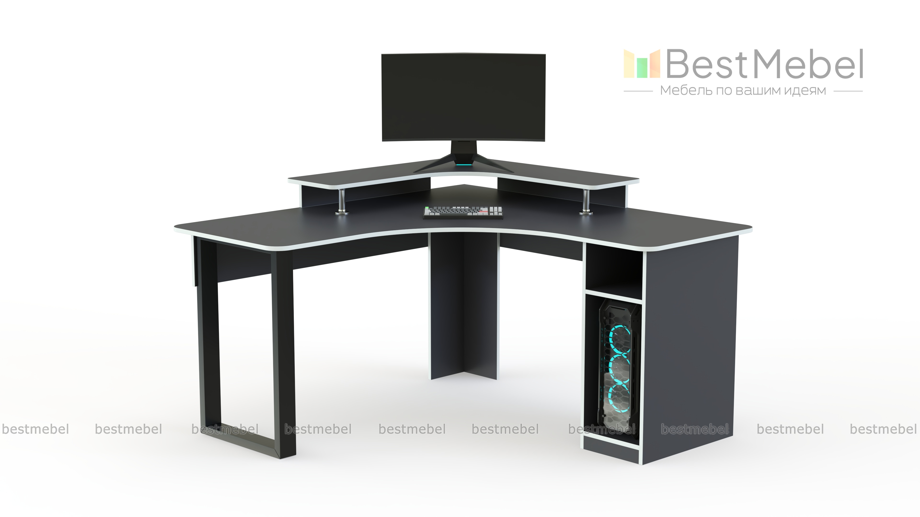 Компьютерный стол Анкор BMS предназначен для геймеров и тех, кто проводит за компьютером длительное время. Угловая модель оборудована просторной столешницей с надстройкой для монитора и периферийных устройств и открытой тумбой с отделениями под системный блок и рабочие материалы. Стол эффектно смотрится в черном цвете с контрастной кромкой и безопасно закруглен по углам. Купить компьютерный стол Анкор BMS и рационально организовать пространство вам поможет наш интернет-магазин.