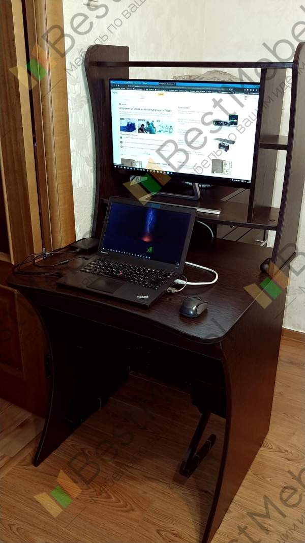 03.2021. На основе этого стола сделал индивидуальный проект для работы сидя-стоя. Получилось порядка 10 тыс. руб. Заменил полку для клавиатуры на ящик, сделал ножки с обратной выпуклостью, чтобы не мешали коленям, добавил полку под столом для отдыха ног, убрал полку для системного блока под столом. Добавил прорезь для сетевого фильтра на задней стенке. Пристройку сделал пониже чтобы ставить на нее монитор при работе стоя. Для роста 172 см высота верхней полки стола должна быть в районе 130 см. У меня получилось 135 см. это высоковато. На Али экспресс заказал подставку для ноутбука за 1,5 тыс. руб.