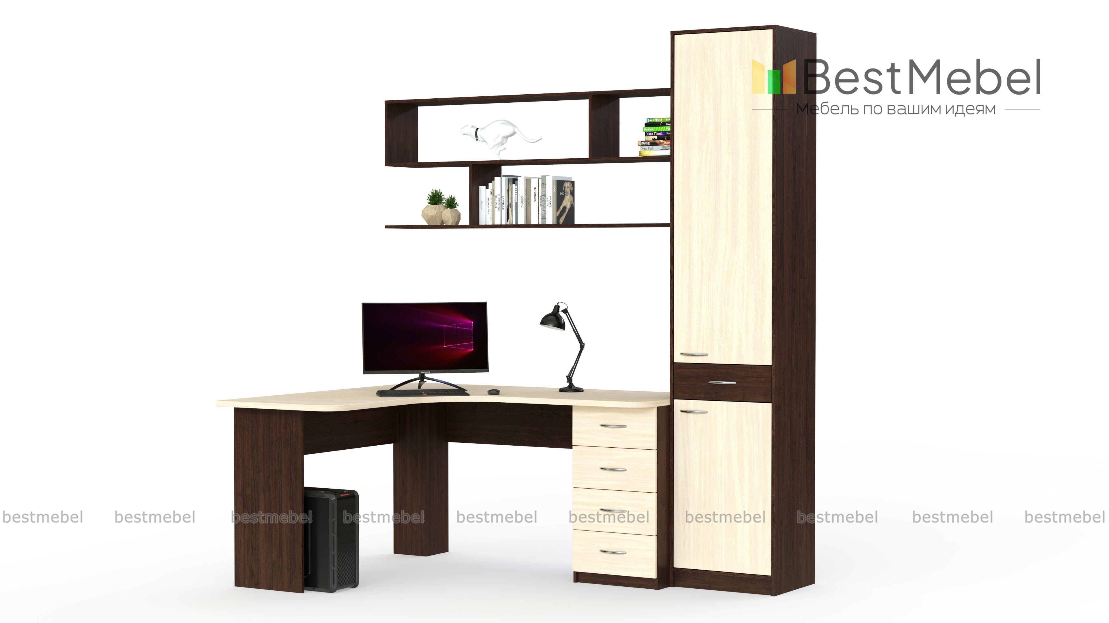 Угловой компьютерный стол со шкафом Марта 12 BMS отличается универсальным современным дизайном и высокой функциональностью. Обустроить комфортную рабочую зону поможет композиция из углового компьютерного стола с тумбой, навесной книжной полки и пенала с двумя распашными дверцами и ящиком для мелочей. Контрастные оттенки подчеркнут строгий и лаконичный дизайн комплекта, а залогом долговечности станут износостойкие материалы. Купить угловой компьютерный стол со шкафом Марта 12 BMS приглашаем в наш интернет-магазин по выгодной цене.
