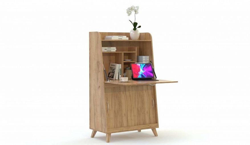 Компьютерный стол-трансформер Сара 4 BMS отличается компактными размерами и современным дизайном. Модель в теплых древесных тонах оборудована открытой верхней полкой, раздвижным отделением и скрытыми за откидной столешницей полками, а устойчивость конструкции придают высокие скошенные опоры. Вы сможете использовать стол для работы за ноутбуком или в качестве шкафа для хранения рабочих материалов и размещения предметов декора. Купить компьютерный стол-трансформер Сара 4 BMS по доступной цене приглашаем в наш интернет-магазин.