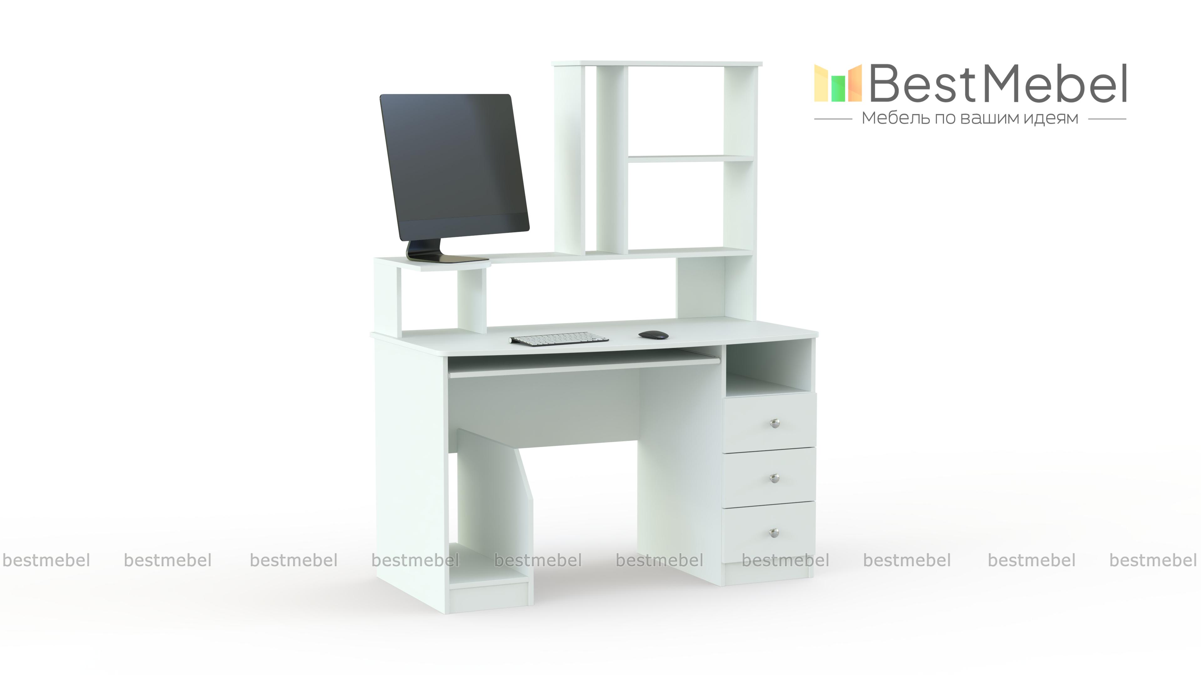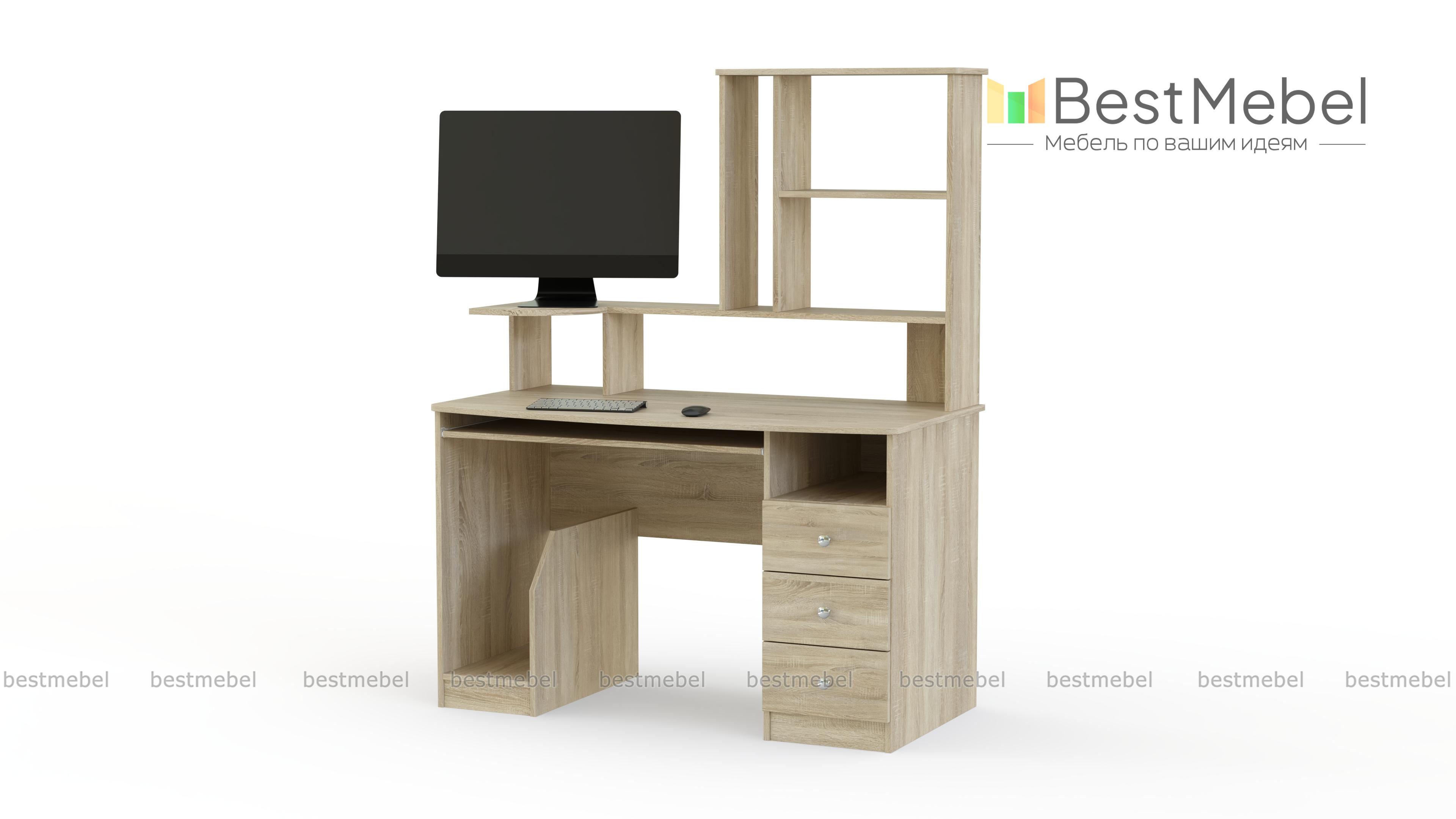 Стол компьютерный СК-002 BMS сочетает в себе простоту и эргономичность. Плавно вырезанная столешница дополнена выкатной полкой для клавиатуры и надстройкой с подставкой для монитора. Практичным решением для хранения канцелярских принадлежностей и бумаг станет тумба с нишей и тремя выдвижными ящиками, а для системного блока предназначена открытая секция сбоку. Купить стол компьютерный СК-002 BMS вы сможете в нашем интернет-магазине, подобрав гармонирующую с интерьером цветовую гамму.