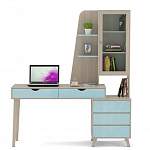 Письменный стол Марио 13 BMS отличается компактными размерами и станет оптимальным выбором для небольших комнат. Оригинальная композиция объединила удобный для письма и работы за ноутбуком столик с выдвижными ящиками для мелочей, тумбу и надстройку с застекленными и открытыми полками на фигурно вырезанной панели. Корпус светлых древесных тонов дополняют износостойкие и простые в уходе фасады в нежном голубом глянце. Купить письменный стол Марио 13 BMS приглашаем к нам в интернет-магазин.
