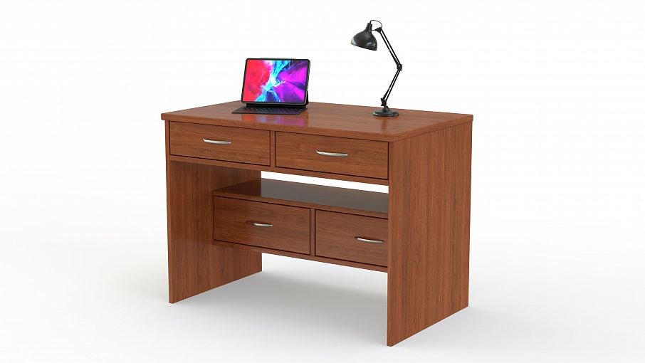 Неординарно и очень симпатично выглядит письменный стол Алиса 21 BMS. Четыре выдвижных ящика, расположенных в разных уровнях, удобно использовать для аккуратного хранения различных документов и вещей, у которых будет специально отведенное для них место. Теперь они никуда не потеряются и всегда окажутся под рукой. Благодаря качественной отделке и насыщенному цвету натурального дерева, изделие смотрится богато и презентабельно. Такую модель приятно поставить и дома, и в приемной офиса. На просторной столешнице можно установить монитор компьютера или ноутбук, стационарный телефон, предметы декора. Выбрать цвет по своему желанию вы можете самостоятельно, если решите заказать письменный стол Алиса 21 BMS на нашем сайте.