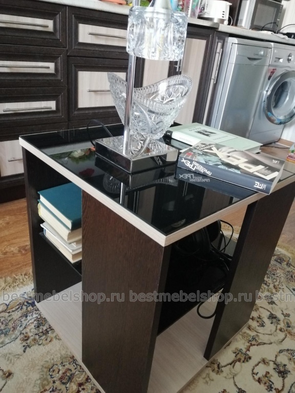 Долго искали небольшой функциональный столик на колёсиках, чтобы поставить возле дивана на кухне. Понравился столик на Бест-мебель. Хорошо, что можно комбинируя, подобрать цвет под нашу мебель. Ещё понравилась стильная стеклянная столешница любого цвета, на которую можно, не опасаясь, поставить горячее. Мы выбрали чёрный цвет столешницы. Столик вместительный, можно положить и книги, и др. (Заказ №00000374313) Спасибо Бест-мебели!