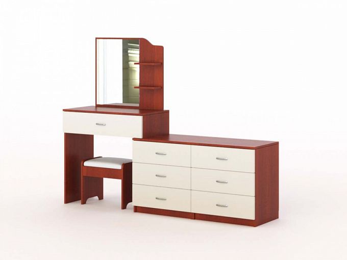 Стол туалетный Торри 4 BMS олицетворяет современный подход к организации пространства. Многофункциональная модель объединила миниатюрный туалетный столик, оборудованный выдвижным ящиком для мелочей, фигурно вырезанной панелью с зеркалом и открытыми полками, и две тумбы. Композиция, выполненная в популярном сочетании теплых древесных тонов и белого, гармонично дополнит современный спальный интерьер. Купить стол туалетный Торри 4 BMS и разместить уходовые средства, домашний текстиль и предметы декора вам поможет наш интернет-магазин.