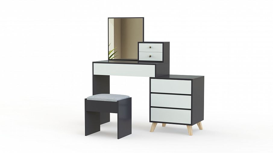 Туалетный стол Блайн 3 BMS органично впишется в современный спальный интерьер и сделает уход за собой комфортным. Комбинированная модель объединила столик с широким выдвижным ящиком, надстройку с парой ящичков для мелочей, большое навесное зеркало, тумбу для хранения аксессуаров и банкетку. Строгую геометрию линий подчеркнет контрастная черно-белая гамма. Купить туалетный стол Блайн 3 BMS по выгодной цене вы всегда сможете в нашем интернет-магазине.