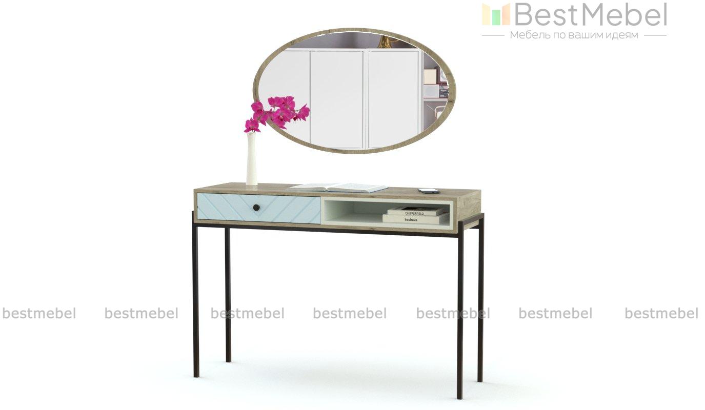 Туалетный стол Паола 13 BMS сочетает в себе классическую элегантность и элементы индустриального стиля. Композиция для современной спальни объединила консоль на высоких металлических опорах и овальное навесное зеркало. Выполненный в актуальных нейтральных оттенках, столик оборудован просторной прямоугольной столешницей, выдвижным ящиком и нишей для удобного хранения уходовых средств и прочих мелочей. Купить туалетный стол Паола 13 BMS вы сможете в нашем интернет-магазине с выбором цвета и размеров.