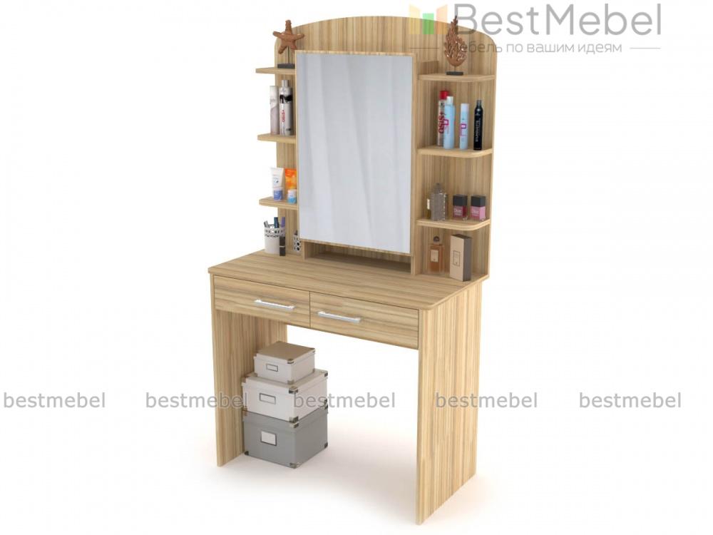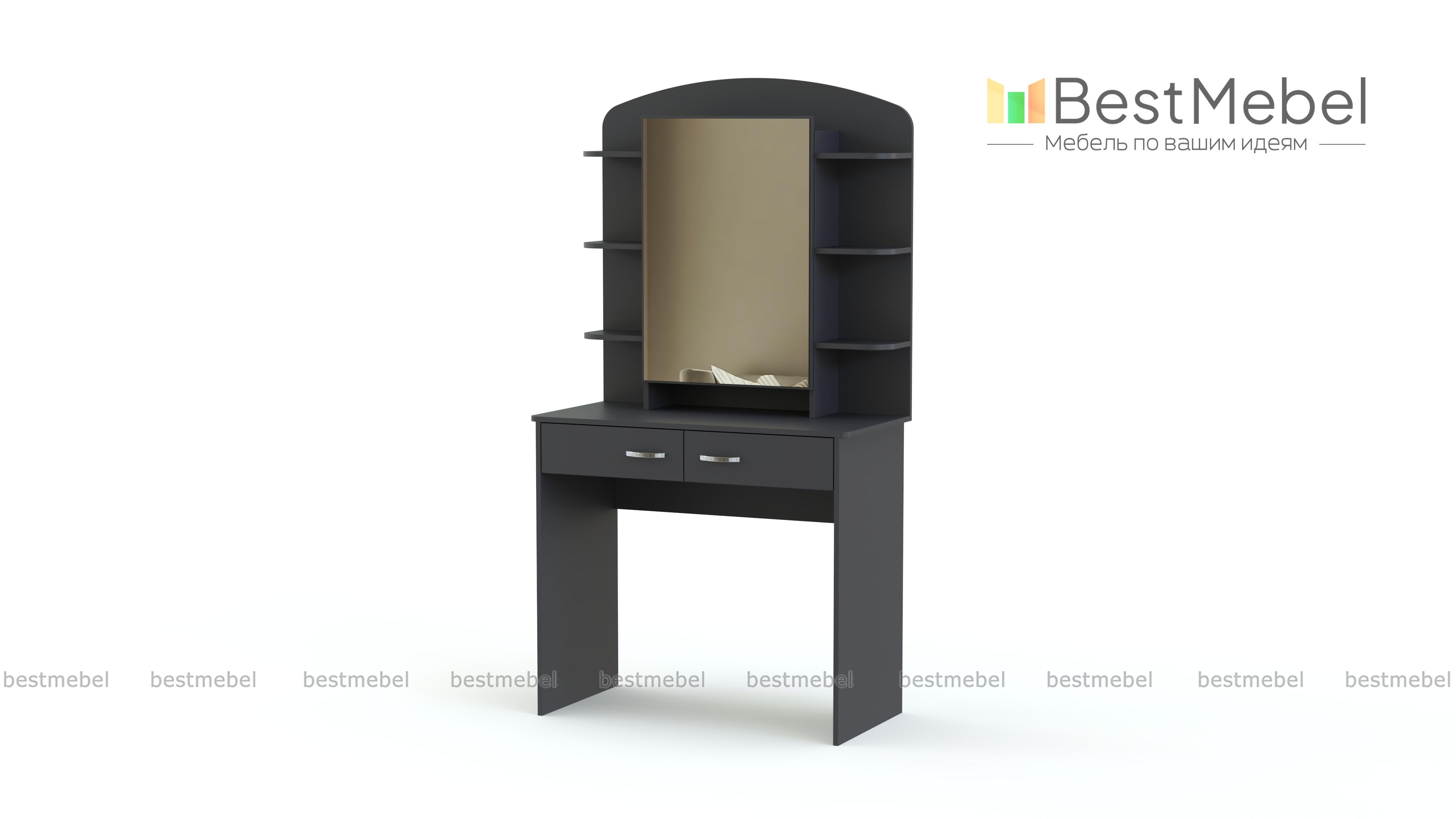 Туалетный столик Милано СБ-2329 BMS – предмет мебели, который по достоинству оценит настоящая женщина. Ведь так приятно и комфортно иметь под рукой все эти милые сердцу мелочи. Модель выполнена в современном стиле, имеет большое место для зеркала, два выдвижных ящичка и шесть открытых полочек для предметов декора, косметики, духов и т.д. За таким изделием очень удобно заниматься косметическими процедурами. У нас Вы можете купить туалетный столик Милано СБ-2329 BMS недорого, при этом у Вас есть возможность самостоятельного выбора цвета и параметров модели.