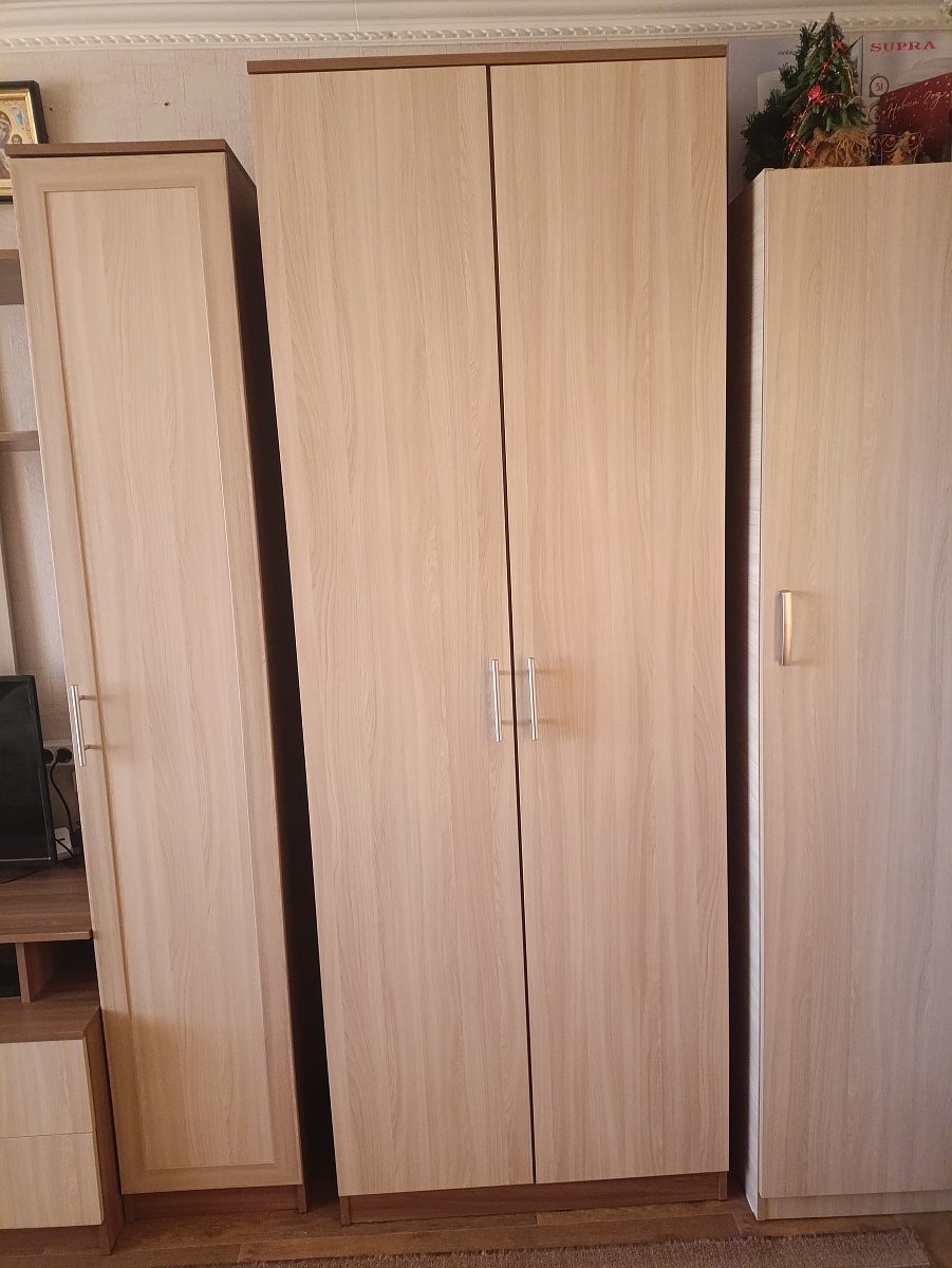 Офигенный шкаф, как раз то, что я искал. Хорошая сборка, всё плотно и ровно, никаких перекосов и сколов. К дверям тоже вопросов нет, катаются как по маслу. Работники тоже молодцы, сразу назвали дату доставки, за пару дней ещё раз позвонили уточнили сроки и возможность приёмки, никаких задержек, всё чётко. Есть только  одно замечание : деталь Цоколь2  крепится к дну с помощью 2 конфирматов, а отверстия в ней были сделаны под 3 шканта, как в Цоколь1. Лично для меня не проблема, легко исправил, на внешний вид не влияет. Результатом доволен на все 100.