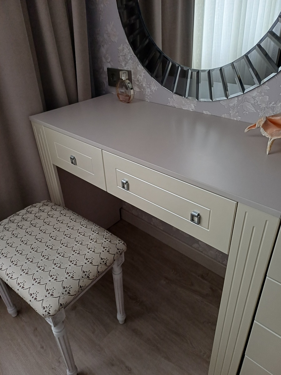 Приобрела столик вместе с комодом. Дл я меня важным было  сделать в динаковом цвете и в нужном мне размере. Все получилось. Хотя в нашем городе нет представительства фабрики пришлось заказывать цвет на страх и риск. Но все сложилось замечательно. Рекомендую !!!!